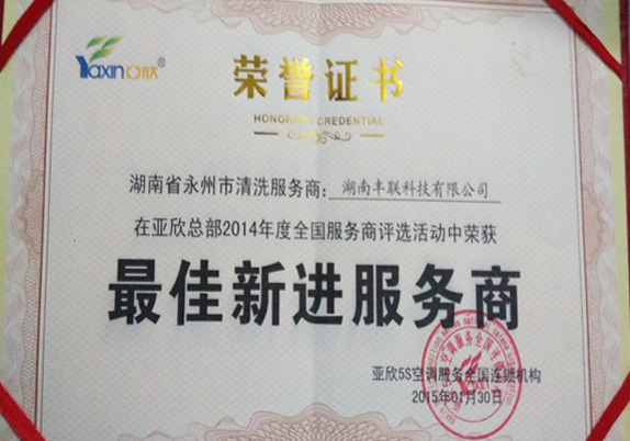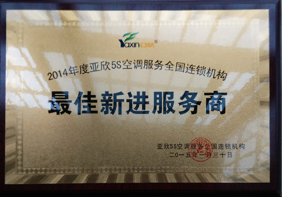 热烈祝贺湖南丰联科技有限公司荣获亚欣5S空调服务全国连锁机构最佳新进服务商!